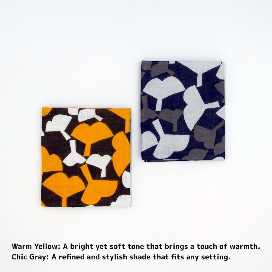 100% Cotton Handkerchief, ICHO Pattern, Happiness Pattern Series, Hand-Dyed Double Gauze, Made in Japan, Crafted by Kyoto Artisans, Fuwa Market Original