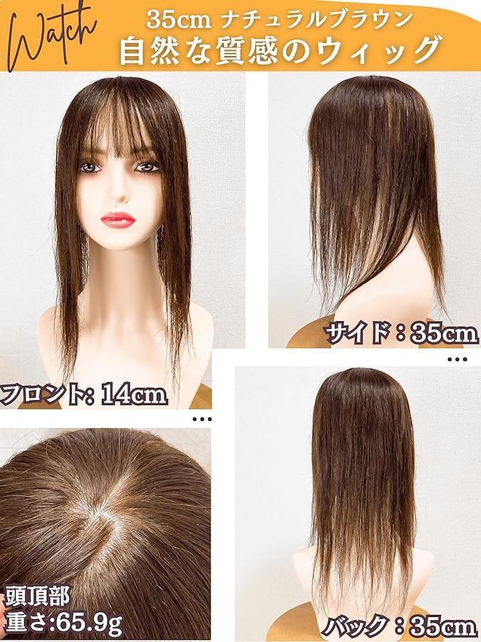 「商品詳細」 (3)サイズ:ストレートセミロング フロント14cm トップ 24cm バック 35cm、サイド 35cm (4)重さ:約 65.9g (5)カラー:ナチュラルブラウン (6)対象: レディース 女性 医療用 プレゼント 中高年 (7)用途: うぃっぐ ウィッグ かつら 部分ウィッグ