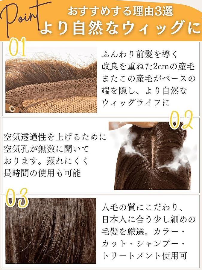 「高級人毛100%」 日本人の髪に馴染みやすい毛髪を採用