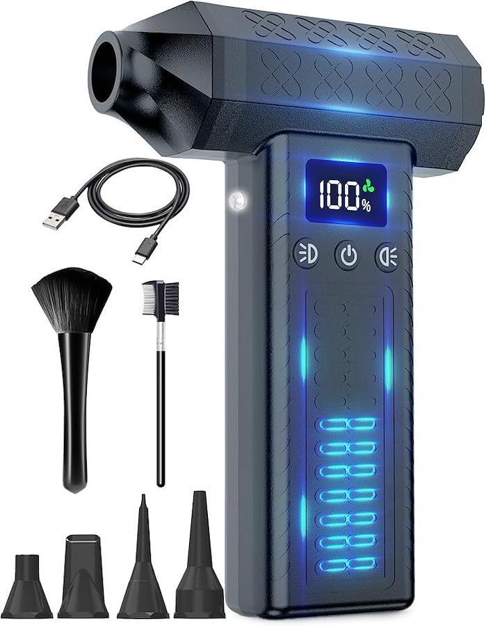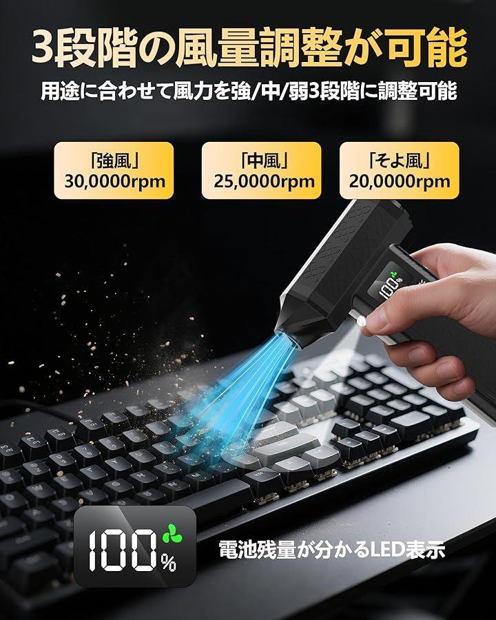 「100%真鍮超強力ブラシレスモーター&8000mAh大容量バッテリー&急速充電可能」アップグレードされた超強力モーターを採用、コンピュータやその他のデバイスの隅々からほこりを吹き飛ばすことができます。