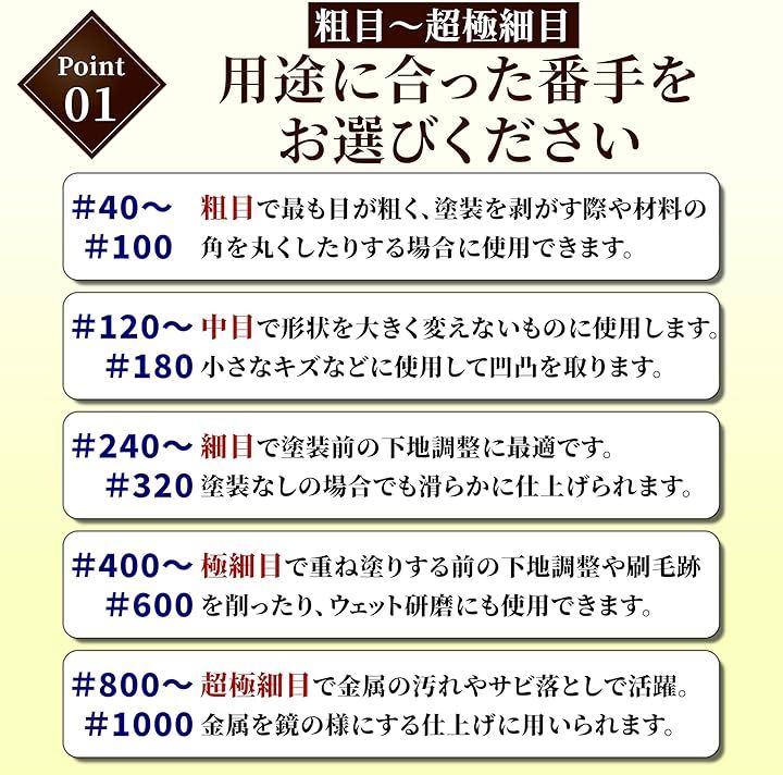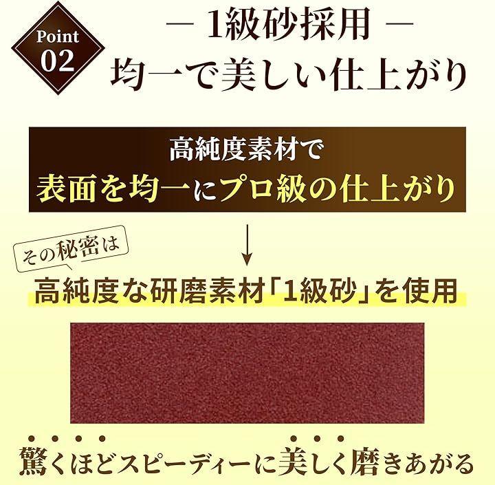 幅広い用途 : 木工の下地処理や金属の研磨、サビ落とし、塗装前の目荒らし、パテ研磨、塗膜の除去など、DIYからプロ作業まで多目的に使用可能。