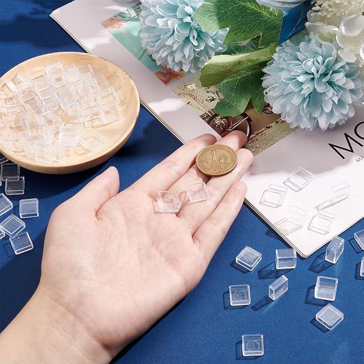 サイズについて: 2サイズ(100pcs / 1サイズ、カラー:クリア)0.3ml:約12x12x4mm、内寸:10x10x3mm; 0.5ml:約12x12x6mm、内寸:10x10x5mm。