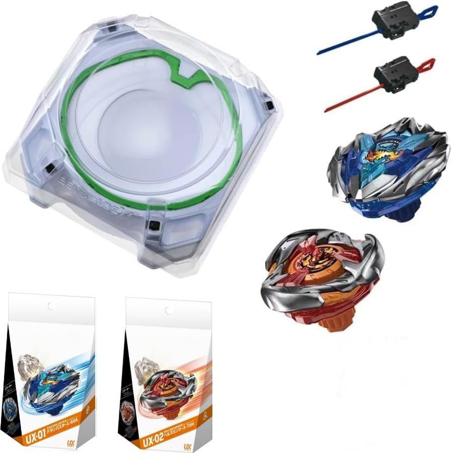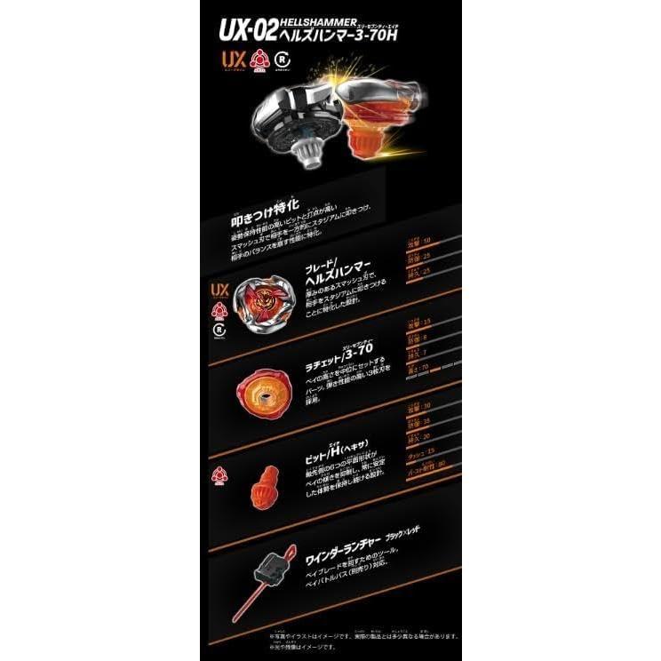 【UX-01 スターター ドランバスター 1-60A】 ワインダーランチャー同梱のスターター。ブレードのメタルを外周に多く配分し、固有の性能に特化したユニークラインのベイ。大型の攻撃刃で瞬間攻撃性能に優れたブレードと大型ギヤでXダッシュの性能を高めたビットで、一撃の攻撃力に特化している。【セット内容】ブレード(1),ラチェット(1),ビット(1),ワインダーランチャー(1),ワインダー(1),取扱説明書(1),
