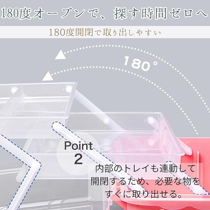 ​蓋は180度大きく開き、内部のトレイも連動して開閉するため、必要なものをすぐに取り出せます。