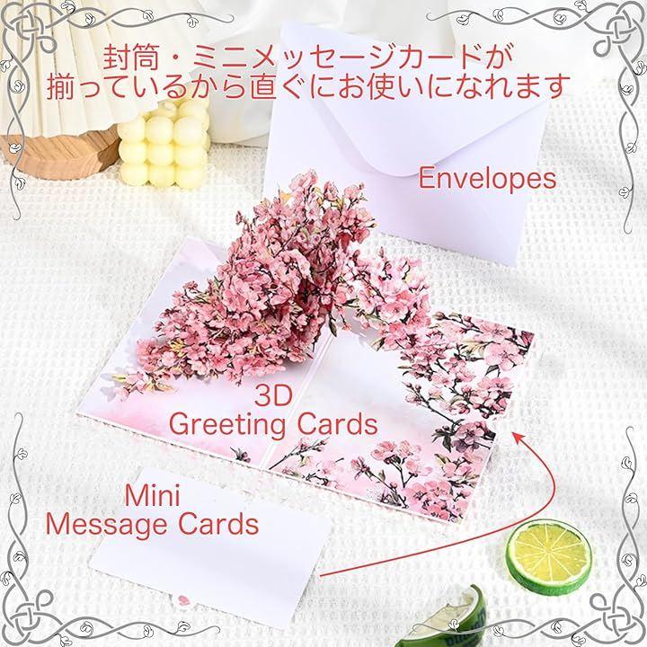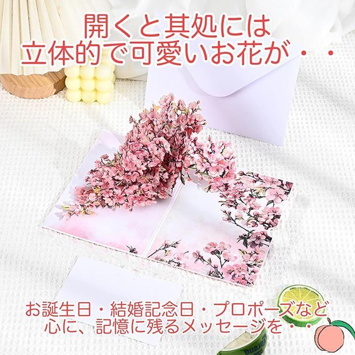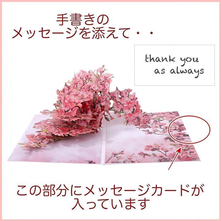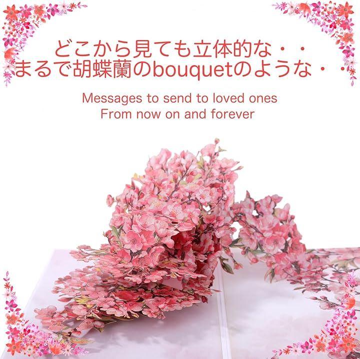 「華やかな立体デザイン」胡蝶蘭・桃の花が飛び出す3Dポップアップ仕様で、開いた瞬間に驚きと感動を演出します。
