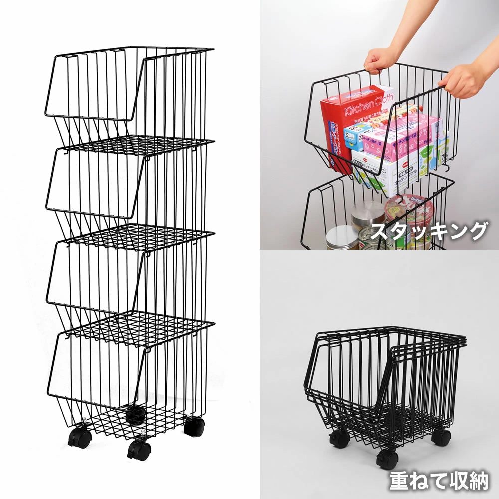 【商品名(JAN)】スタッキングバスケット4段 キャスター付き(4935437104570)