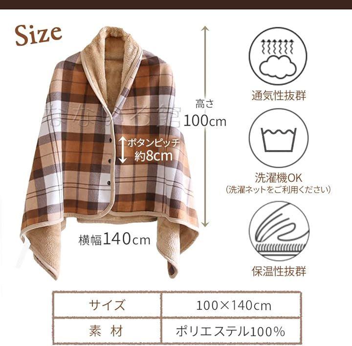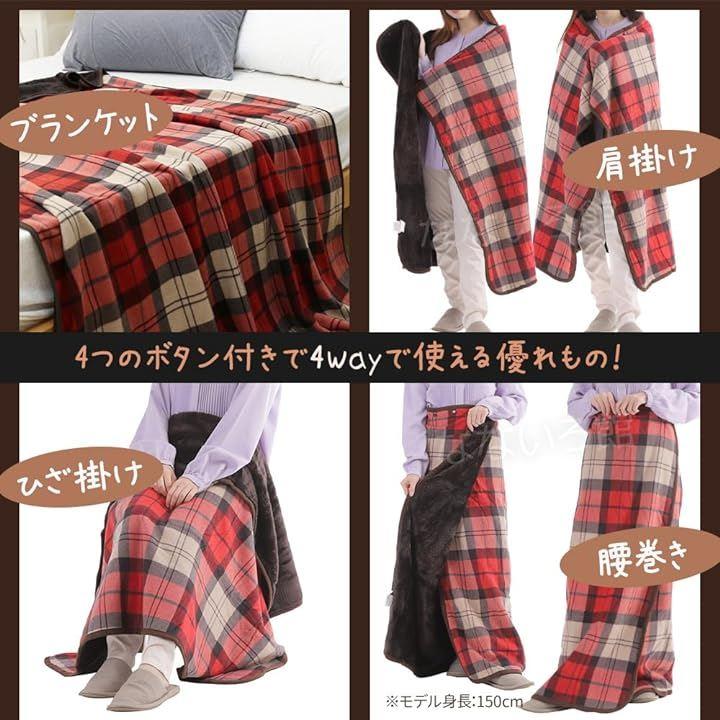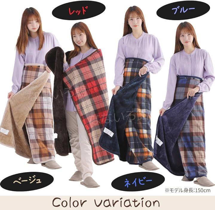 「(なないろ館)4way ブランケット ひざ掛け 巻きスカート 着る毛布 あったか 裏ボア 100x140cm 肩当て 肩掛け 裏起毛 防寒 フランネル」