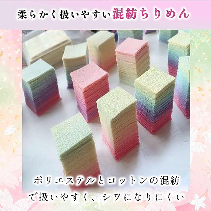 「グラデーションちりめん生地で華やかな作品づくり」柔らかな色合いが美しいグラデーションちりめん生地500枚セット。