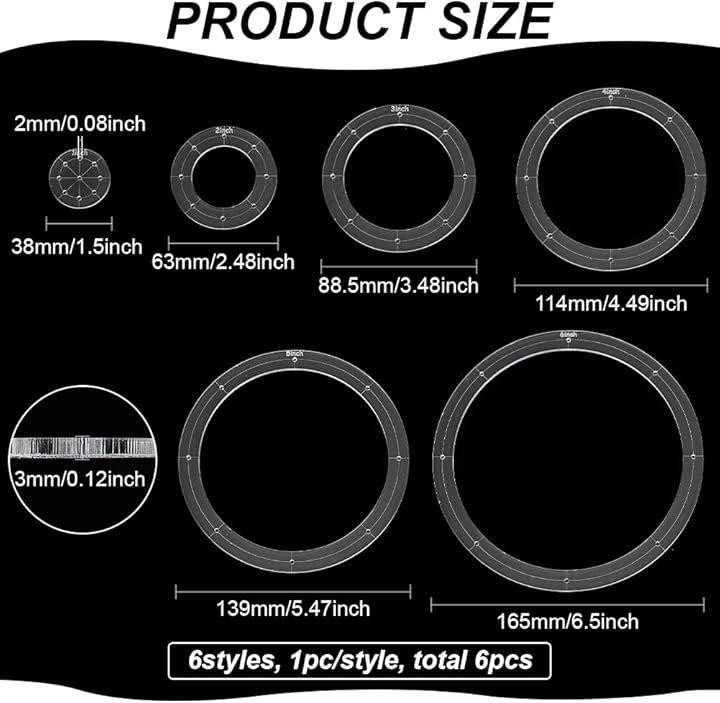 パッケージ内容: 縫製ニーズに合わせて、6サイズの円形アクリルテンプレートを含まれます。