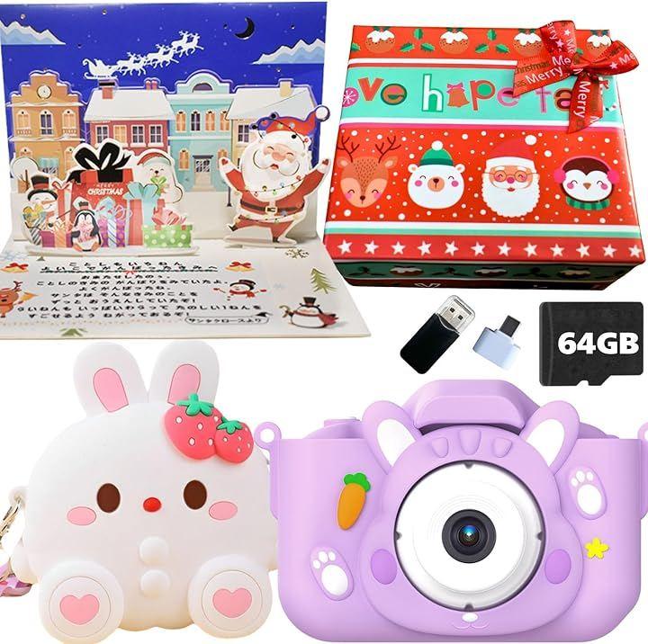 「popomaキッズカメラのおすすめポイント」キッズカメラには、かわいいウサギのポーチがセットになっています。