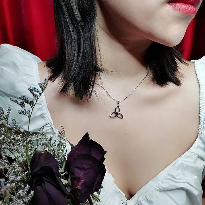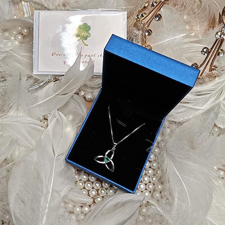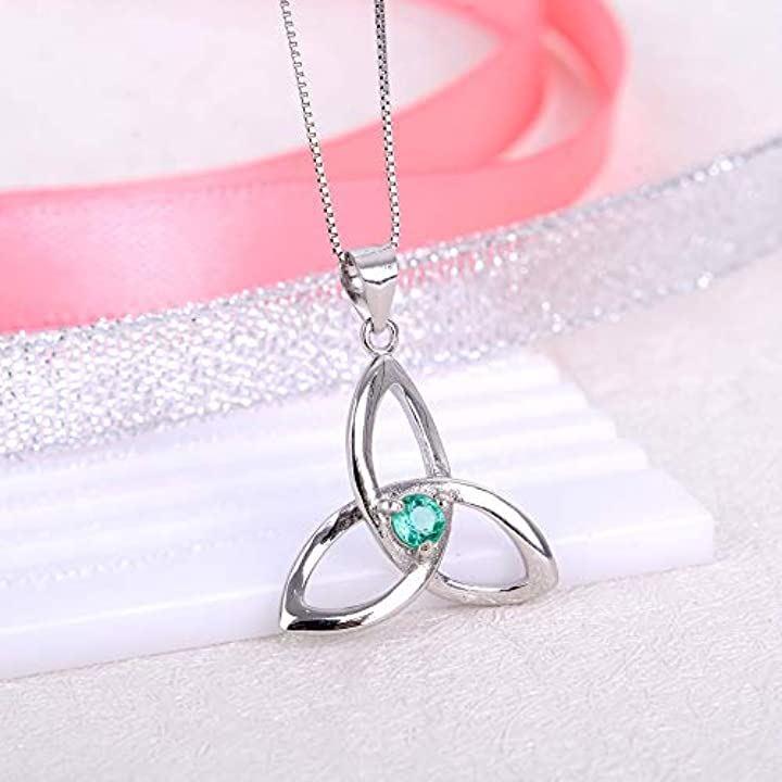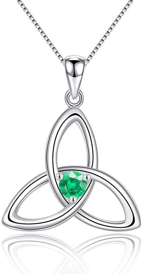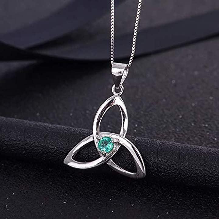 925 Sterling Silver Necklace 40+5cm Chain Pendant Women Birthday Birthstone Green Emerald Hypoallergenic Metal