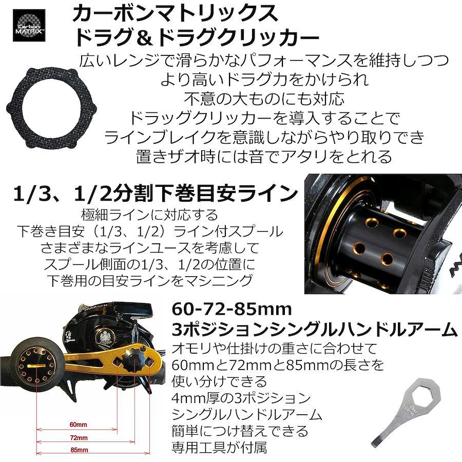 右ハンドル仕様 / 自重:358g / ギア比4.8:1最大ライン巻取:60cm / 最大ドラグ力:9kg / ラインキャパシティ:PE3号(200m)デジタルラインカウンター搭載 / 搭載使用電池:型番CR2032(交換可能) / 船べりアラーム機能 / LEDバックライト付きデカ文字カウンターおすすめ釣法:青物ジギング、タイラバ、ビシアジ , ヤリイカ, LT五目,太刀魚テンヤなど※「糸の巻き方・データ入力方法・取扱説明・保管方法・注意点」につきましては、「付属の取り扱い説明書」または「メーカーホームページ上の商品ページ」からご確認をお願いいたします。