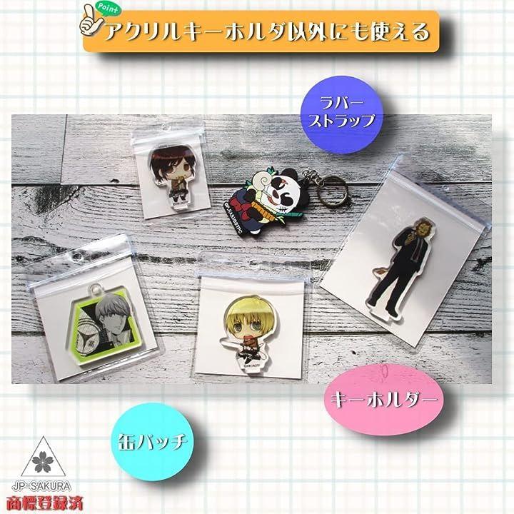 アクリルキーホルダー、ラバーストラップ、缶バッジ、キーフォルダーをカバーしてくれます。