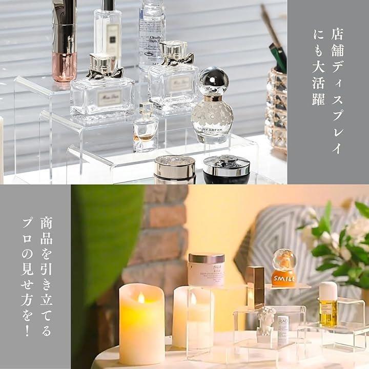 「透明アクリルで美しい陳列を実現」厚さ2mmの透明アクリルを使用し、商品やコレクションを引き立てる美しいディスプレイを実現。