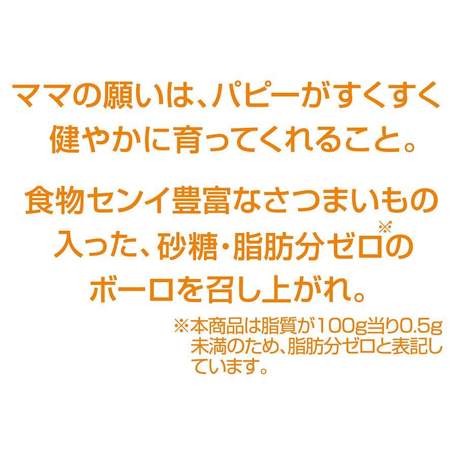 食物センイ豊富なさつまいも入りのボーロ。砂糖・脂肪分ゼロ。北海道産のばれいしょでん粉を使用。小麦粉・乳製品 不使用。合成着色料・保存料 無添加。