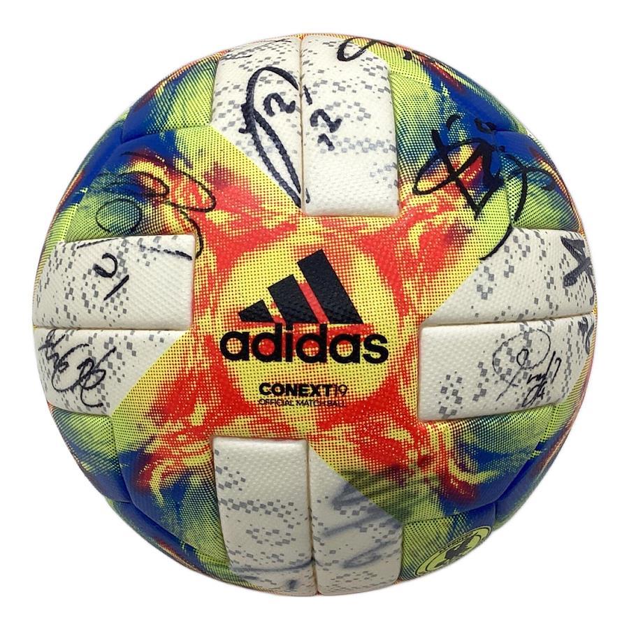 ■商品説明【ブランド】adidas (アディダス)【アイテム】サッカーボール【モデル】CONEXT19【サイズ】5号【備考】2019 FIFA女子ワールドカップフランス公式試合球/サイン有(サイン証明無し)【状態】程度Bキズ・ヨゴレ有。(※画像をご参照ください。)