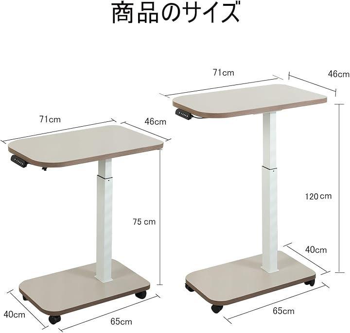 「商品仕様」*天板サイズ:約幅71CMx奥行46CM*本体重量:約18KG *耐荷重60KG *高さ調節範囲:75-120CM*材料:化粧合板、鋼鉄合金材料