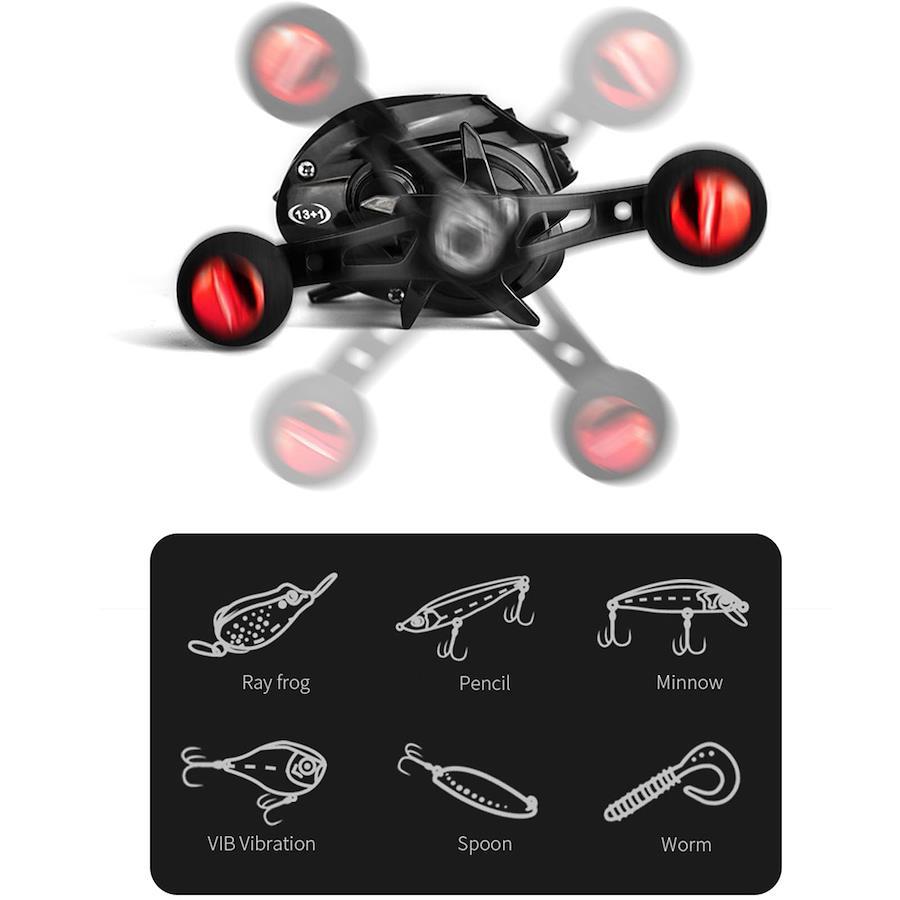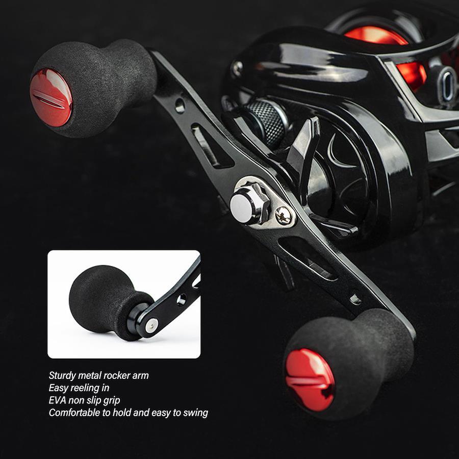【高耐荷重】キャスティングリールは最大10kgの耐荷重があり、大型の魚の釣りに適しています。強力な魚の引きに耐える十分な強度と安定性を備え、スムーズな釣りを実現します。【高速ギア比】キャスティングリールは高速7.2:1のギア比で設計されており、素早い釣り体験を提供します。このギア比により素早いリーリングが可能となり、釣りの効率と成功率が向上します。【操作と使用が簡単】キャスティングリールは操作が簡単で、習得も簡単です。初心者も経験豊富な釣り人も、キャスティングリールを使って簡単に釣りをすることができます。【金属シェル】キャスティングリールは軽量で耐久性のある金属でできており、寿命が長くなります。この素材設計により、リールを軽量に保ちながら、優れた保護を提供し、操作や持ち運びが簡単になります。【防爆ライン】キャスティングリールは防爆ラインで設計されており、釣り糸を破損やねじれから保護します。この設計により、釣り糸の耐用年数が長くなり、偶発的な糸切れのリスクが軽減され、釣りの成功率が向上します。