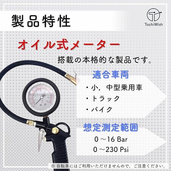 グリップサイズ: 約12センチ/最高測定:16Kg 測定密度:±2.5% 測定範囲:0~230psi 0~16bar