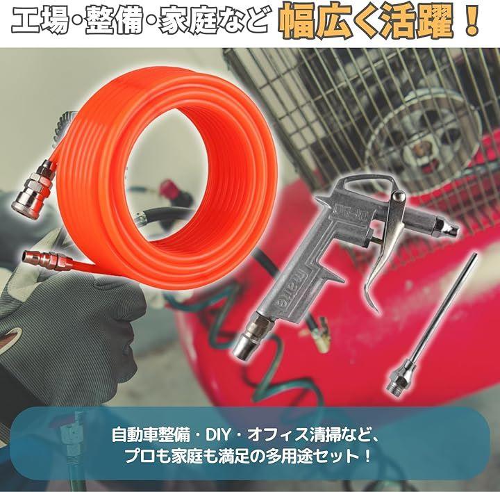 「多用途で活躍する便利セット」 工場、自動車整備、オフィスや店舗の清掃、製造ラインでの作業など、幅広いシーンで役立つエアホース&エアダスターセット。