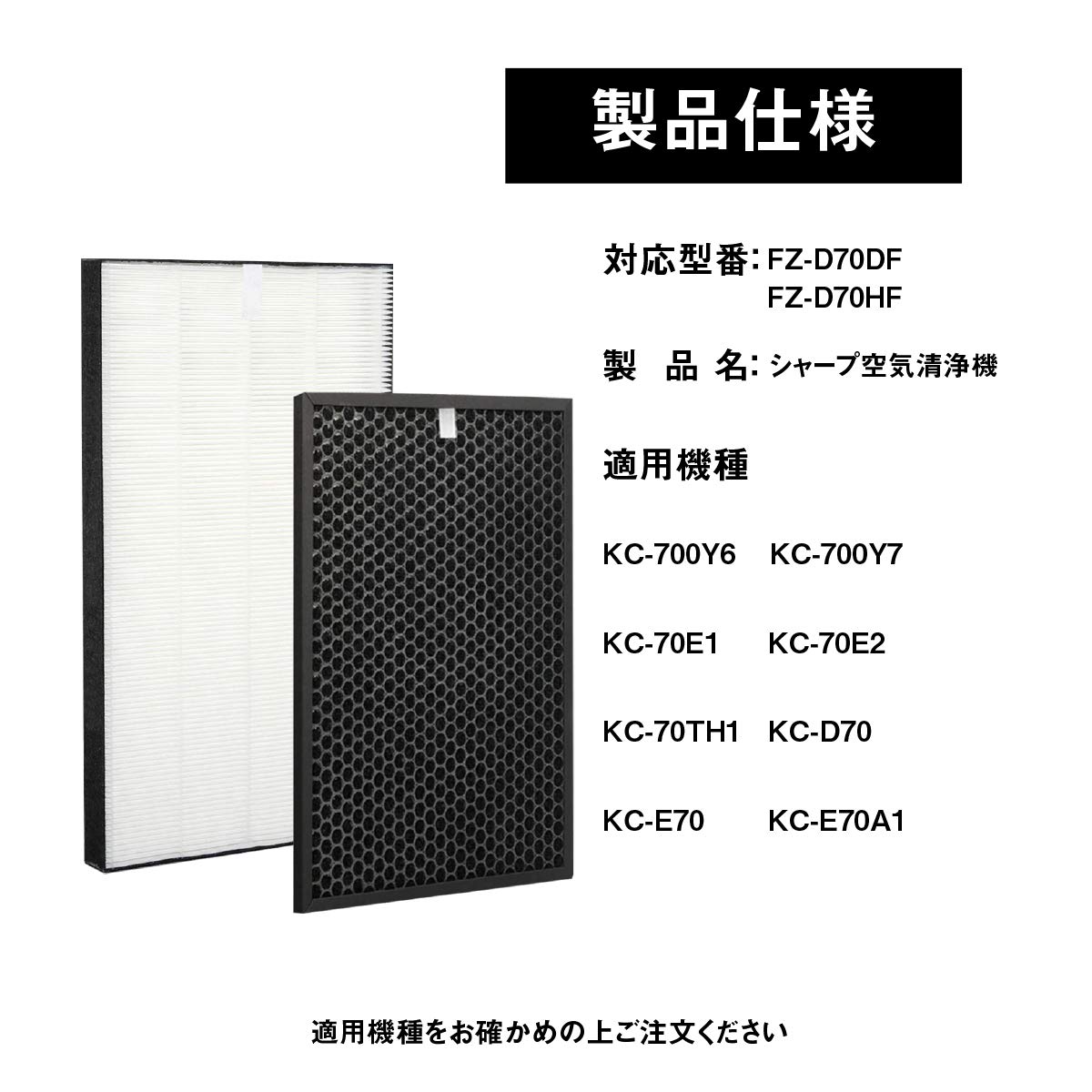 3営業日以内に発送≪新品未開封品≫:梱包物: ・脱臭フィルターFZ-D50DF 1枚 ・取扱説明書 1部 ・使用開始日記入ラベル 1枚対応機種:加湿空気清浄機対応(非純正)KC-700Y6、KC-700Y7、KC-70E1、KC-70E2、KC-70TH1、KC-D70、KC-E70、KC-E70A1など。※FZ-D70HF -適用機種 :KC-700Y6、KC-700Y7、KC-70E1、KC-70E2、KC-70TH1、KC-D70、KC-E70、KC-E70A1、KC-F70、KI-GS70、KI-HS70、KI-JS70、KI-LS70、KI-S70E4、KI-S70Y9など。交換目安 約10年※交換の目安説明:一般家庭で1日にタバコを5本吸った場合。日本電機工業会規格(JEM1467)に基づき算出。ご使用状況やニオイの種類・強さによっては交換時期が早くなることがあります。