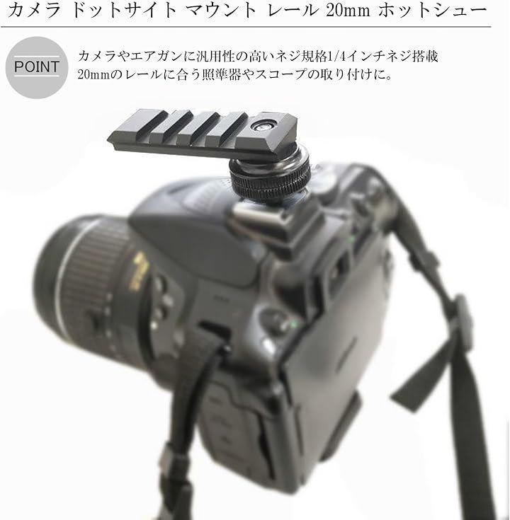 標準的な20mmレールからホットシューへの変換を担うことで、本来エアガン用ではない多くのカメラアクセサリーや照準器類が使用可能になります。