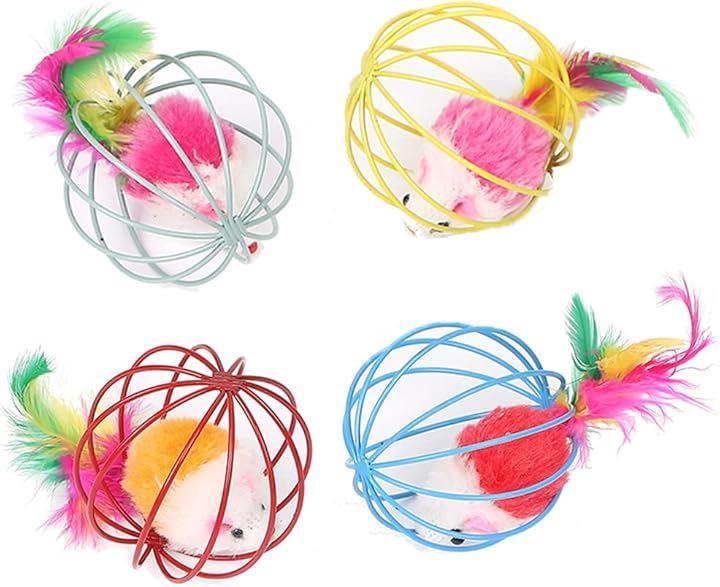 カラフルなネズミと羽が狩猟本能も刺激します。