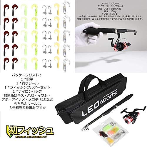 パッケージリスト:1 *釣竿1 *釣りリール1 *フィッシングルアーセット1 *ナイロンバッグ対象魚はキス・ハゼ・イワシ・アジ・アイナメ・メゴチ などなどもちろんリールは3号相当糸巻済みです