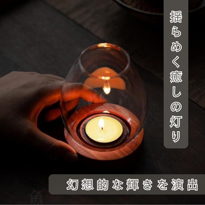 「揺らめく癒しの灯り」ろうそくの灯火がガラスに映り込み、幻想的な輝きを演出。