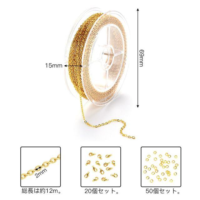 セット内容:アクセサリー用チェーン*1巻、ジャンプリング*50個、ロブスタークラスプ*20個。