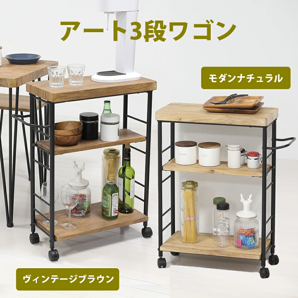 【商品名(JAN)】アート3段ワゴン ヴィンテージブラウン/モダンナチュラル(4954877326748/4954877326755)