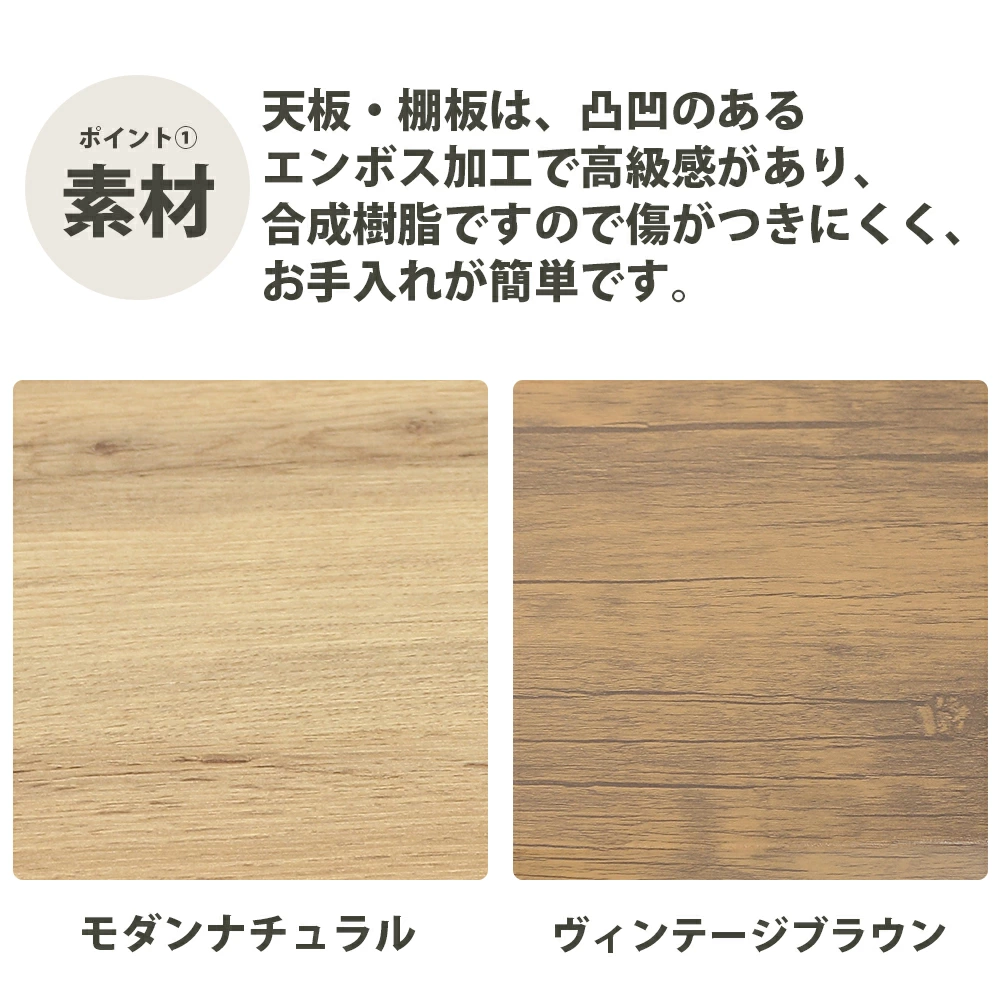 【材質】天板・棚板=合成樹脂化粧繊維板、脚=スチール