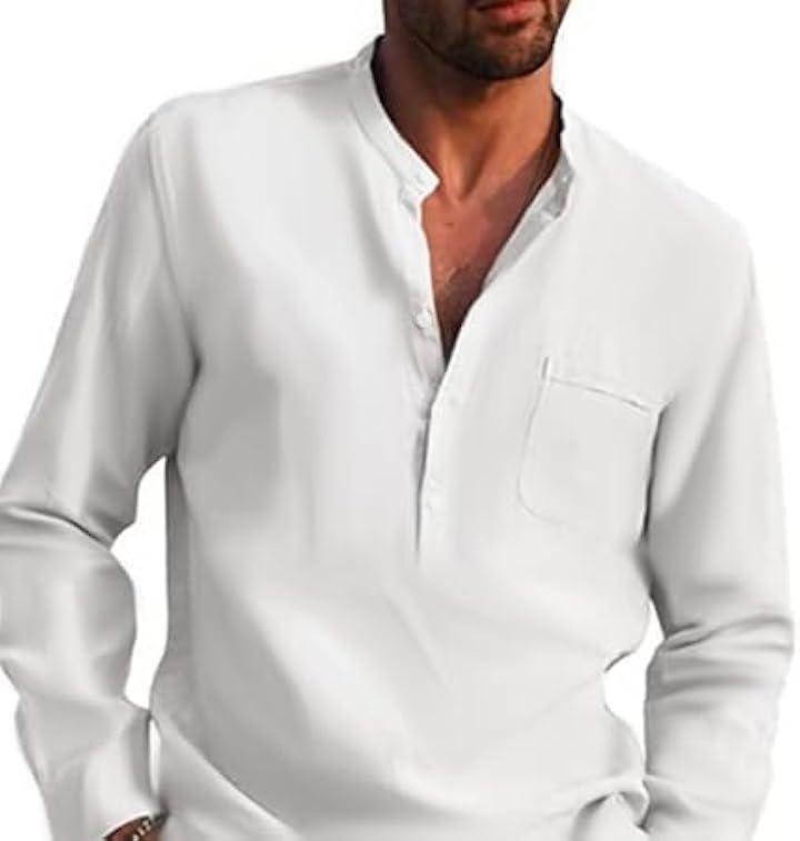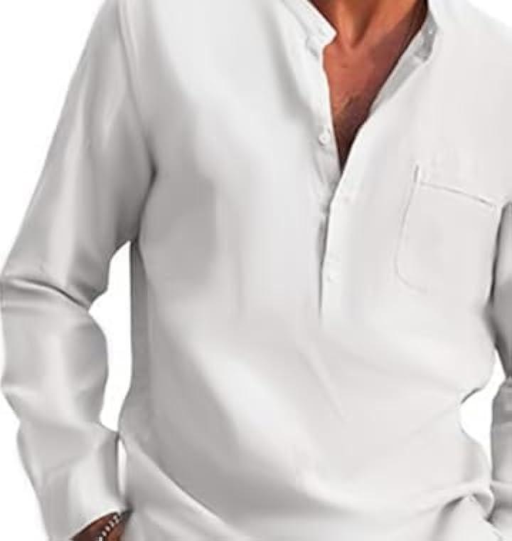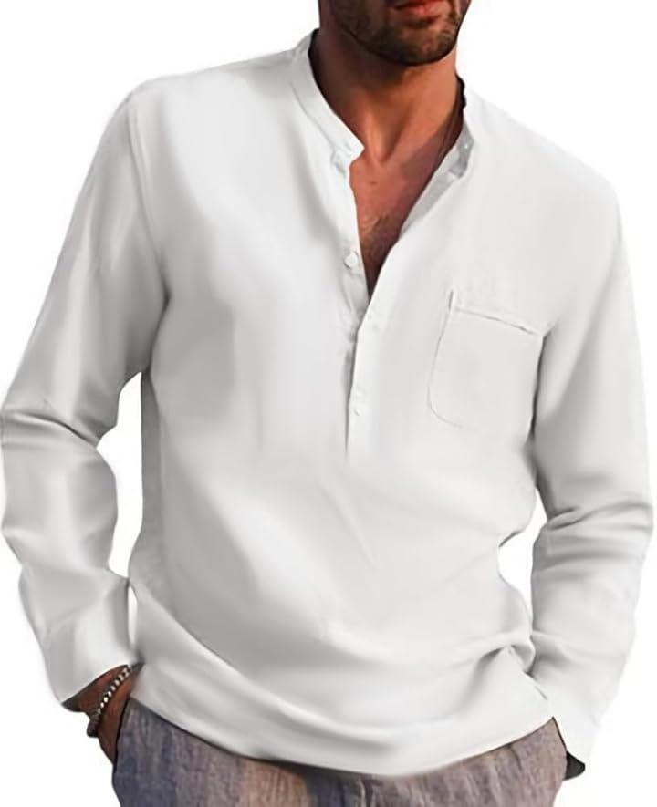 *周りと差をつけた着こなしが楽しめるヘンリーネックシャツ。