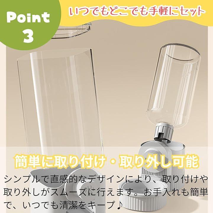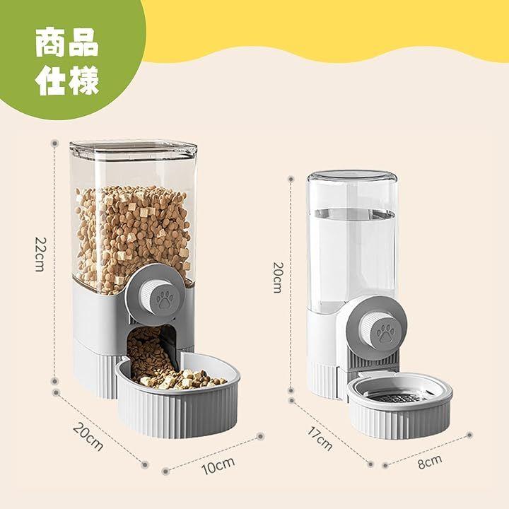 「商品内容」サイズ:フィーダーの高さ8.7 x 幅3.9 x 奥行き7.9インチ(22 x 10 x 20 cm)給水高さ7.9 x 幅3.1インチ(20 x 8 cm)奥行き6.7インチ(17 cm)重量:約500g 素材:本体:高耐久プラスチック 給水部分:ステンレス鋼 ノブ部分:強化プラスチック