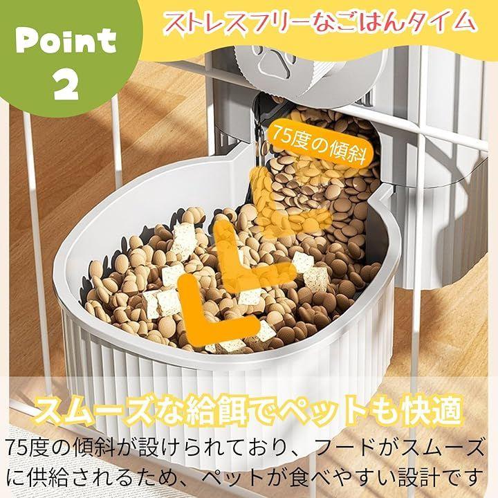 「スムーズな給餌でペットも快適」75度の傾斜が設けられており、フードがスムーズに供給されるため、ペットが食べやすい設計です。