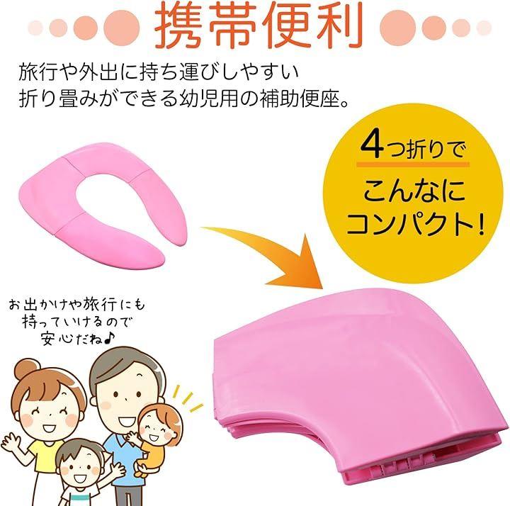 ・「携帯便利」 旅行や外出に持ち運びしやすい折り畳みができる幼児用の補助便座。