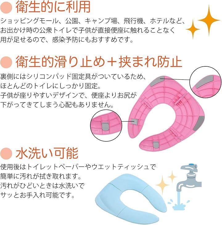 ・「衛生的に利用」 ショッピングモール、公園、キャンプ場、飛行機、ホテルなど、お出かけ時の公衆トイレで 子供が直接便座に触れることなく用が足せるのでおすすめです。
