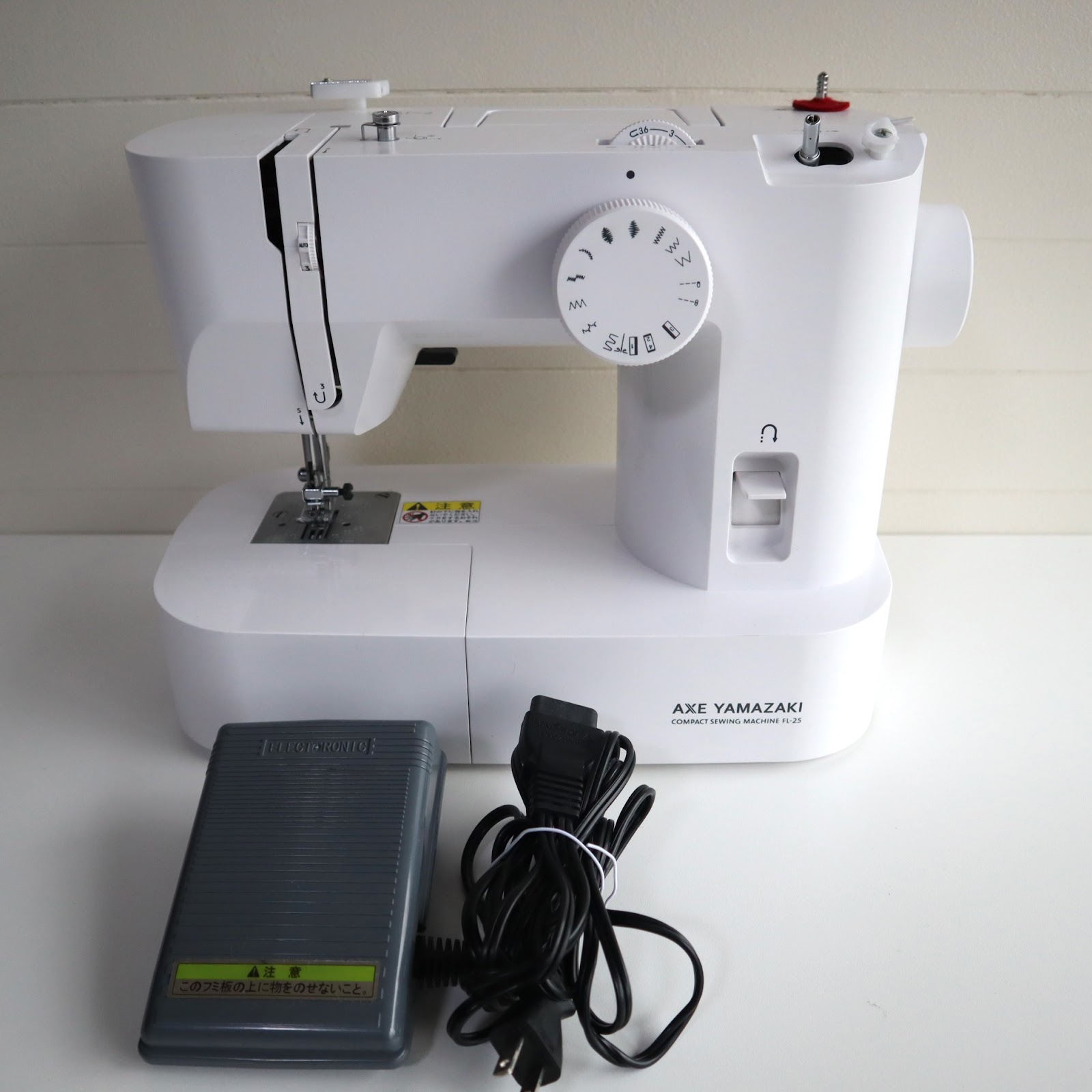 【詳細】■ 商品名・モデル:コンパクトミシン FL-25■ ブランド:AXE YAMAZAKI(アックスヤマザキ)■ カラー:ホワイト■ 状態:- 傷・汚れ:右上部外装に破損あり。その他には大きな汚れなし。- 使用感:一般的な中古品です。使用回数・購入時期は不明。- 動作確認:通電および針の上下動作を確認済み。その他細かな機能は未確認のため現状品となります。■ 付属品:フットコントローラー、電源コード■ セット内容:本体+フットコントローラー一式