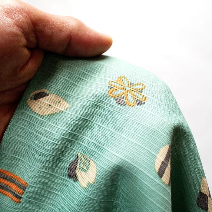 戦乱の世が落ち着いた江戸時代、和菓子は飛躍的に発展し工夫を凝らしたお菓子がたくさん誕生しました。現代においても新しい和菓子が次々と生み出されています。干菓子・生菓子・練り菓子……いろんな和菓子が可愛く並んだお菓子柄、お好きなお菓子は見つかりますか?そこにあるだけで甘く幸せな気持ちにしてくれるデザインです。色は優しいパステルカラー【グリーン】と【あかね】の2色をご用意しました。生地はサラッと優しい触り心地、ヨコ糸の太さに変化を持たせる事で味のある太細な横縞が入る特徴を持つ表情豊かなシャンタン生地です。【カバーサイズ】 横50㎝×縦50㎝【生地素材】 綿(シャンタン)100%この商品はカバー(ファスナー加工)のみです。中わたは別途ご購入ください。またカートの購入可能数より多い数をご希望の場合はご相談ください。
