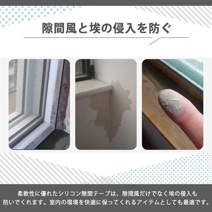 「隙間風と埃の侵入を防ぐ」柔軟性に優れたシリコン隙間テープは、隙間風だけでなく埃の侵入も防いでくれます。