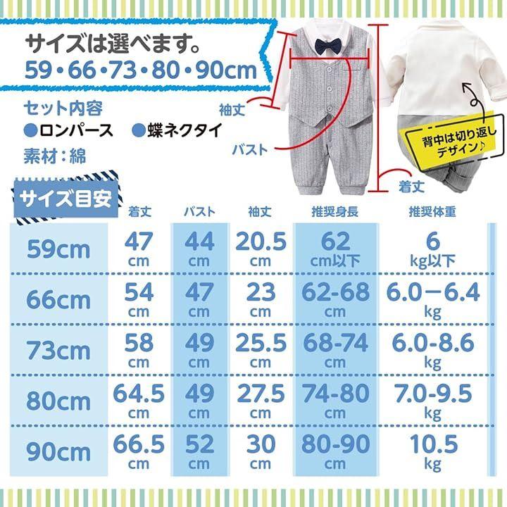 サイズ:73cm 着丈:58cm バスト:49cm 袖丈:25.5cm 推奨身長:68-74cm