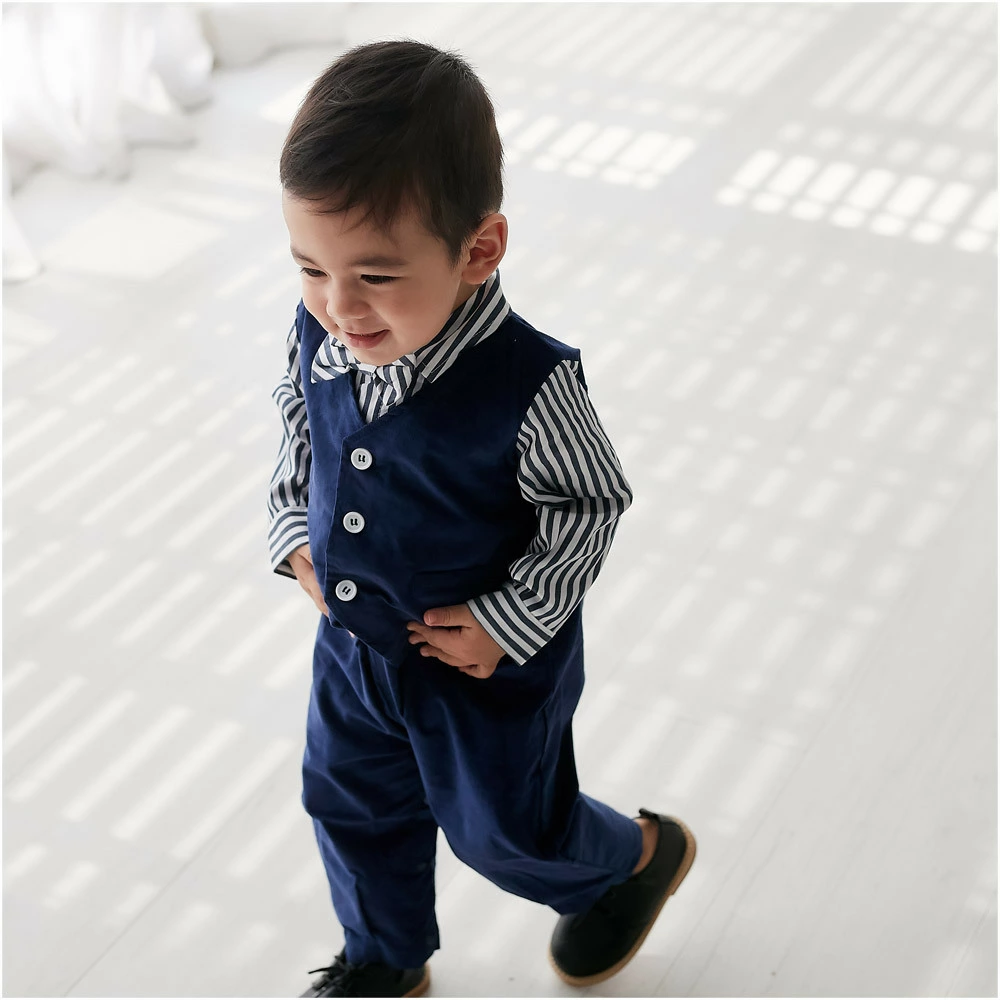 男の子用フォーマルロンパースです。スナップ止めで、着替えやおむつ替えに便利です。しっかりしていて且つ肌触りのよい上質な生地を使用していますので、子供も快適におしゃれできます。ベビーの着心地を一番に考えて作ってあります。