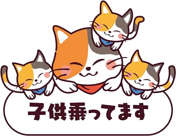 三毛猫親子のかわいいデザイン このベビーインカー ステッカーは、三毛猫親子をモチーフにしたデザインが特長で、可愛らしい雰囲気が魅力です。