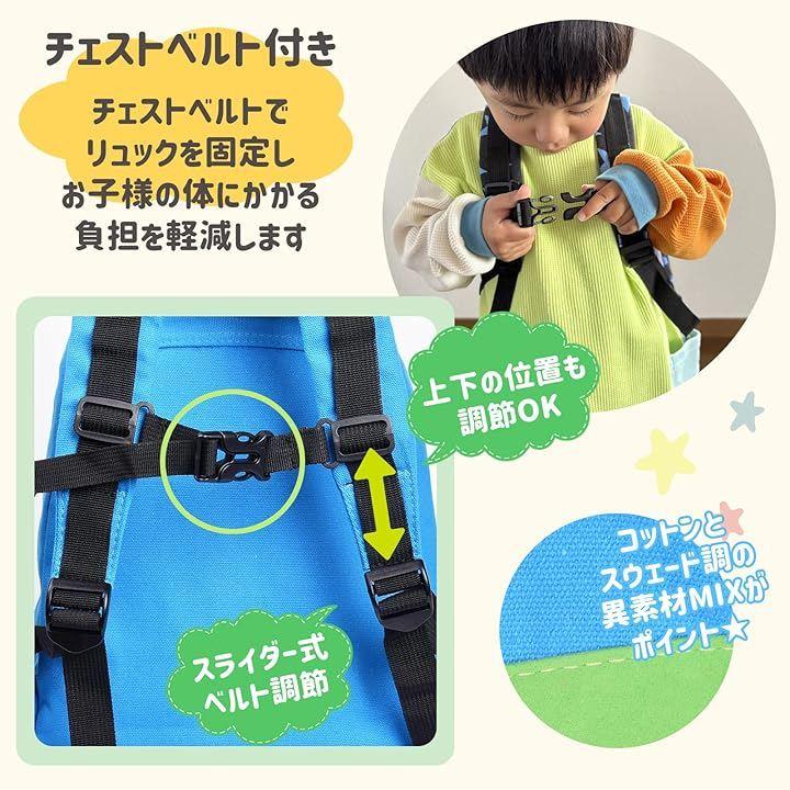 また活発なお子様にも嬉しい、リュックがずれずに快適に背負うことができるチェストストラップを取り付けています。