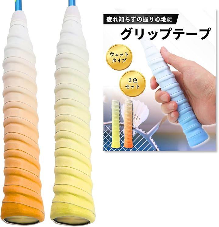 オシャレなグラデーションカラーの2色セットで、ラケットを彩りながらプレーが楽しめるバドミントングリップテープ。