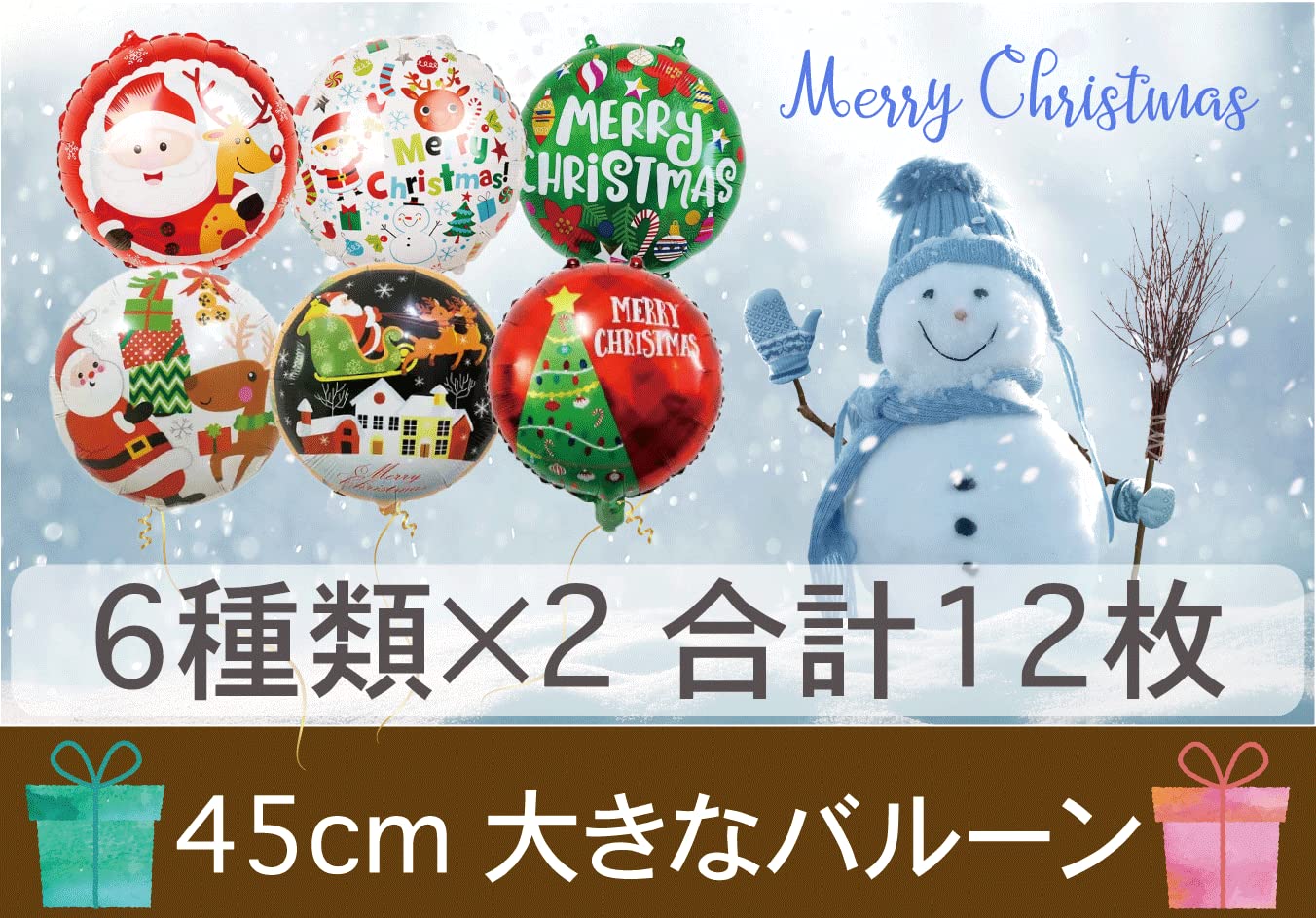?アマゾン限定販売?クリスマスバルーン 【仕様】形:ラウンド / ・サイズ:45cm /・数量:12枚入り ・色:6種類 サンタさん、トナカイ、ツリー、メリクリ、プレゼント、ソリに乗ったサンタ /・付属品:ストロー×1、リボン(シルバー)×1 ※アマゾン限定販売 【飾り・演出】映える☆大きな存在感のアルミバルーン☆一気にクリスマスの雰囲気を華やかに演出します☆長持ちするので少し早めに飾り始めていただいて大丈夫です☆ 【アルミバルーン】ラテックスの風船と比べ丈夫で長持ちします。ヘリウムガスを入れるとフワッと浮きます。お届け時は空気は入っていない状態で畳んでのお届けになります。ハンドポンプ、ヘリウムガスを使用して空気を入れてご利用ください。大きな風船のためストローではなくポンプ等の空気入れのご利用をおすすめいたします。(空気入れは付属しておりません)※空気を過度に入れすぎると破裂の原因になります。膨らませた風船の空気を抜く際にはストローをお使いください。 【こんな場面で】クリスマス、店舗の飾り、撮影、撮影会、記念写真、プレゼント、イベント、ショップディスプレイ、宣伝用のプレゼント、ウィンターセールなど様々な機会にご利用ください。 【風船屋の安心保証】お客様の大切な日に間に合うために商品到着後すぐに中身の確認をお願いいたします。不備がございます場合は、アマゾンよりご連絡ください。再発送または返金等誠心誠意対応させていただきます。全ての商品はアマゾン倉庫より迅速に発送いたします。