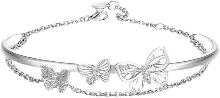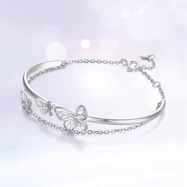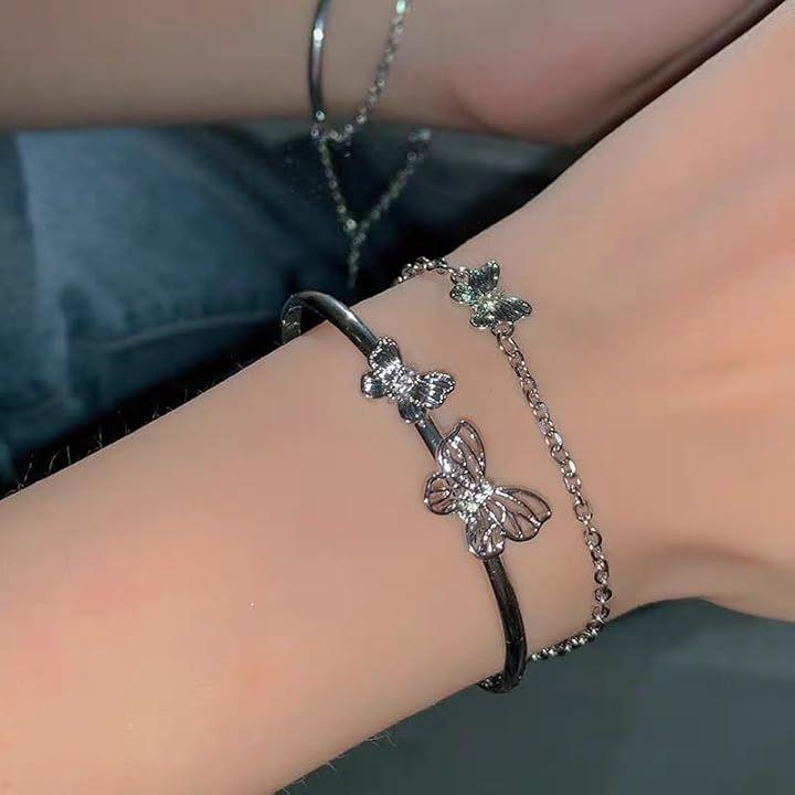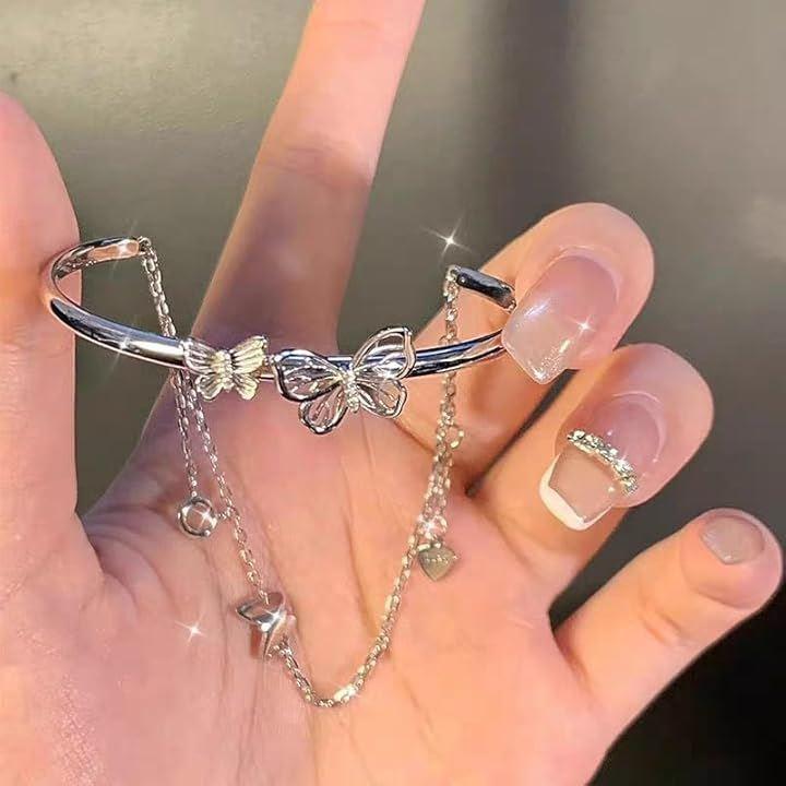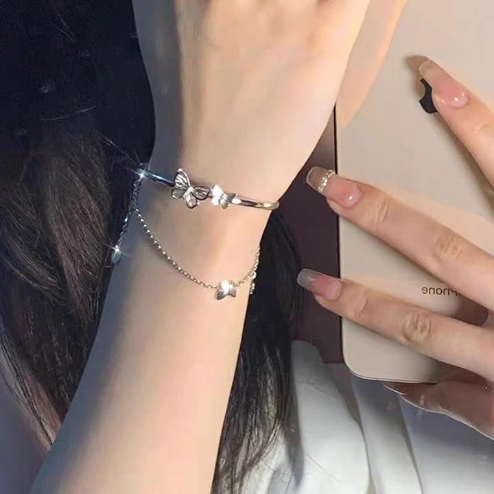 「デザイン」人気のバタフライデザイン / バングル+チェーンの重ね付けでお洒落かつ上品