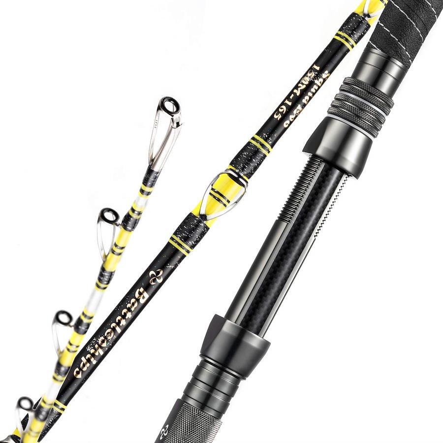ヤリイカ、スルメイカに最適なロッドです。 全長は150cm、手持ちでの誘い釣りでも持ち重りせず、かつ、細めの穂先で、繊細なイカの乗りをとらえる事ができるよう設計されています。 鉛負荷は100~150号(Max200号)です。 実釣テストでは、駿河湾の大型ヤリイカの多点掛けにも十分対応していました。一般的なヤリイカ釣りはもちろん、駿河湾の夜イカ、そしてビシアジにも最適です。 オニカサゴやアカムツにも対応する最も汎用性に優れたモデルです。 ライバルに差をつけるためにも是非お勧めいたします。駿河湾のプロの漁師にもご使用頂いています!