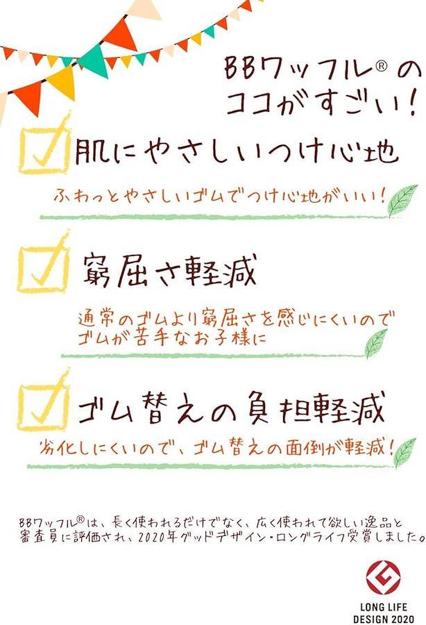 その相反するウエストゴムの欠点を軽減するために最初に開発したウエストゴムがBBワッフルソフトタイプです。