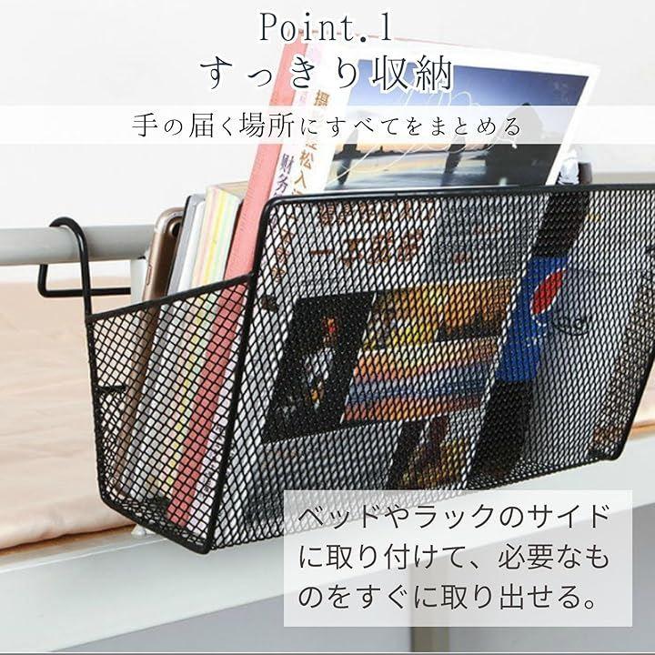 「手の届く場所にすべてをまとめる」ベッドやデスクの横に設置するだけで、よく使う小物をまとめて収納できます。